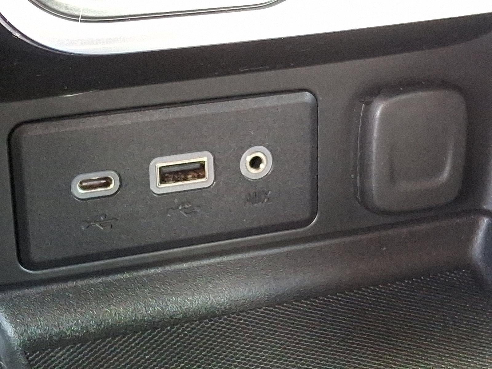 - USB data ports, 2, one type-A and one type-C includes auxiliary input jack, located in front center storage bin