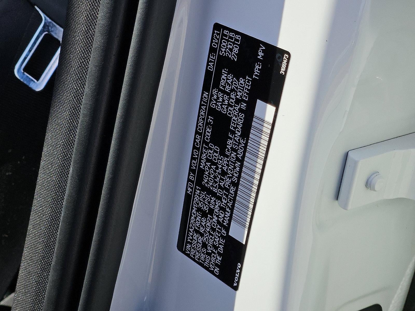 Clean CARFAX. Crystal White Metallic 2021 Volvo XC60 T6 R-Design CERTIFIED BY VOLVO AWD Automatic with Geartronic I4 Supercharged 4D Sport Utility AWD, 12V Power Outlet, Luggage Area, 360 Degree Surroundview Camera, Advanced Package, Air Quality with Advanced Air Cleaner, Apple CarPlay/Android Auto, Cargo Tray, Exterior Parking Camera Rear, Graphical Head-Up Display, harman/kardon® Speakers, Inductive Charging For Smart Phone, License Plate Frame, Memory seat, Pilot Assist Driver Assistance System, Power Liftgate, Power moonroof, Protection Package Premier, Rubber Floor Mats, Stainless Steel Bumper Cover, Wheel Locks, Wheels: 21" 5-Dbl Op Spk Matt Black Dmnd Cut Alloy.