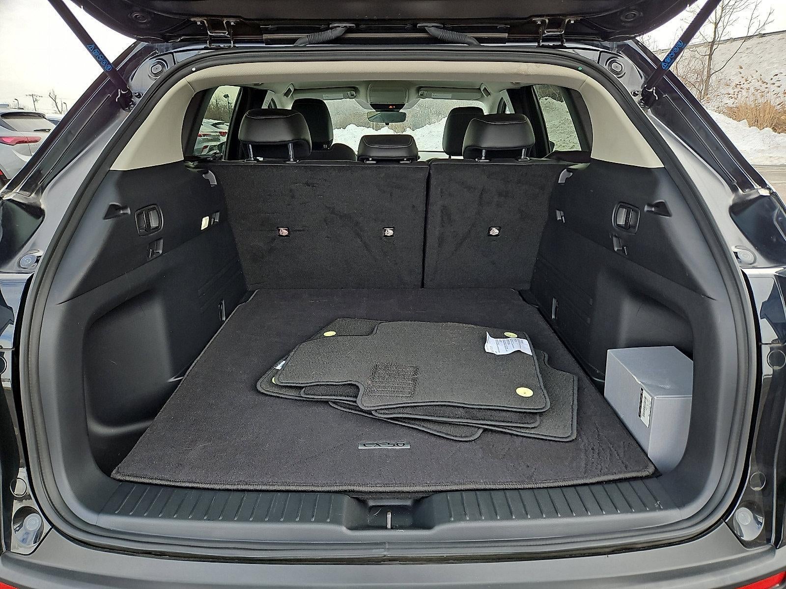 CARFAX One-Owner. Clean CARFAX. Certified. Jet Black Mica 2023 Mazda CX-50 2.5 S Select Package MAZDA CERTIFIED AWD 6-Speed Automatic SKYACTIV® 2.5L 4-Cylinder DOHC 16V Just Inspected, 1 OWNER, CLEAN CARFAX, LOW MILES, 4-Wheel Disc Brakes, 8 Speakers, ABS brakes, Alloy wheels, AM/FM radio, AppLink/Apple CarPlay and Android Auto, Traction control, Wheels: 17" x 7J Aluminum Alloy.