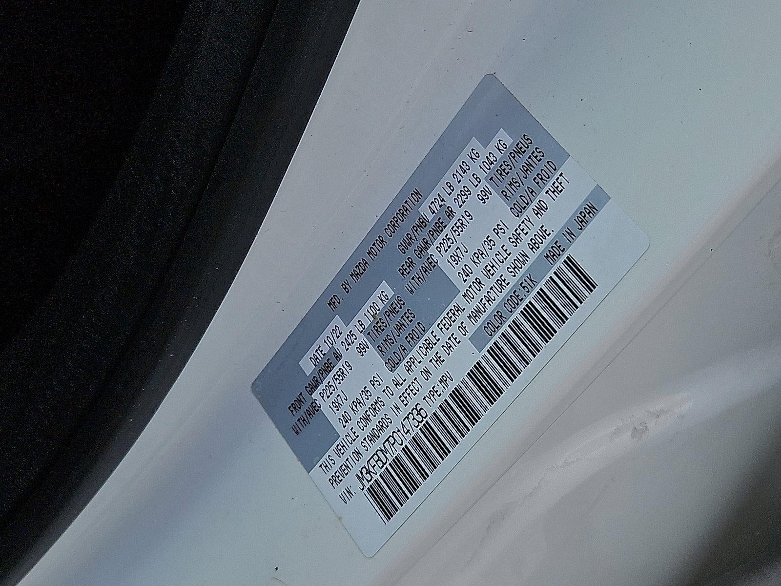 CARFAX One-Owner. Clean CARFAX. Certified. Rhodium White Metallic 2023 Mazda CX-5 2.5 S Premium Package MAZDA CERTIFIED AWD 6-Speed Automatic SKYACTIV® 2.5L 4-Cylinder DOHC 16V Just Inspected, 10 Speakers, 4-Wheel Disc Brakes, ABS brakes, Alloy wheels, AM/FM radio: SiriusXM, AppLink/Apple CarPlay and Android Auto, Memory seat, Power driver seat, Power Liftgate, Power moonroof, Traction control, Wheels: 19" x 7J Aluminum Alloy. 24/30 City/Highway MPG Mazda Certified Pre-Owned Details: * Powertrain Limited Warranty: 84 Month/100,000 Mile (whichever comes first) from original in-service date * Limited Warranty: 12 Month/12,000 Mile (whichever comes first) after new car warranty expires or from certified purchase date * Roadside Assistance * 160 Point Inspection * Warranty Deductible: $0 * Transferable Warranty * Includes Autocheck Vehicle History Report with 3 Year Buyback Protection. 3 month SiriusXM trial subscription. * Vehicle History WHY BUY FROM US Come to Faulkner Mazda Test Drive the newest Mazda vehicles or Used Cars and Trucks. Shopping for more Finance Options? Want more Money for your Trade In? We offer Convenience, Savings, Selection, Exceptional Service and Money Saving Specials to our Philadelphia, PA area customers. Come in today or contact our dealership by phone or by our online contact us form. We want to see you in a new Mazda or Used Car today.Horsepower calculations based on trim engine configuration. Fuel economy calculations based on original manufacturer data for trim engine configuration. Please confirm the accuracy of the included equipment by calling us prior to purchase. Please call the sales department toll free for appointment and information on our select pre-owned automobiles.