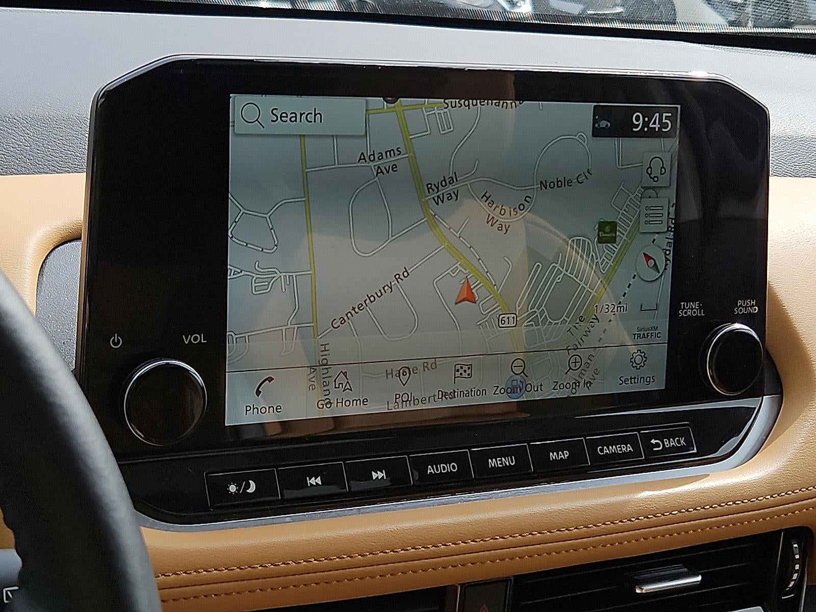 - Radio: AM/FM NissanConnect w/Navigation -inc: Nissan door to door navigation w/3D building graphics and satellite imagery featuring online POI search and online premium traffic information and 5 years complimentary map updates, SiriusXM Traffic, SiriusXM Travel Link, 9" color display w/multi-touch control, NissanConnect featuring Apple CarPlay and Android Auto and Bluetooth®
