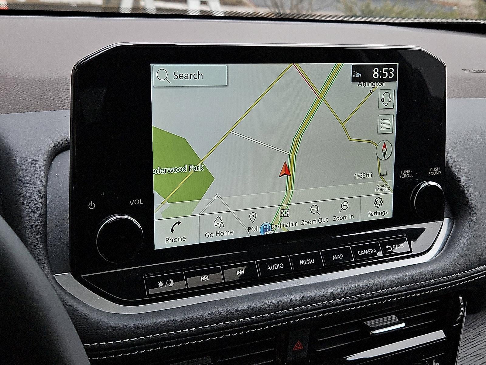 - Radio: AM/FM NissanConnect w/Navigation -inc: NissanConnect featuring Apple CarPlay and Android Auto, 9" color HD display w/multi-touch control, Bluetooth®, WiFi hotspot, Nissan door-to-door navigation w/3D building graphics, satellite imagery featuring online POI search and online premium traffic information, 5 years complimentary map updates, wireless Apple CarPlay, SiriusXM Traffic, SiriusXM Travel Link, Alexa built-in and voice recognition